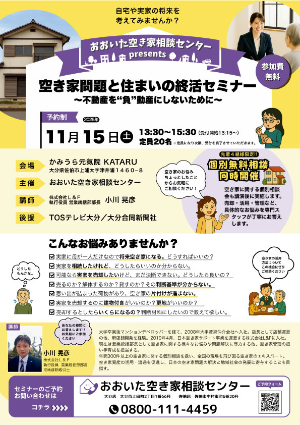 空き家サポーター®「大分かぼす不動産」主催-住まいの終活セミナー(TOSテレビ大分様/大分合同新聞社様後援)